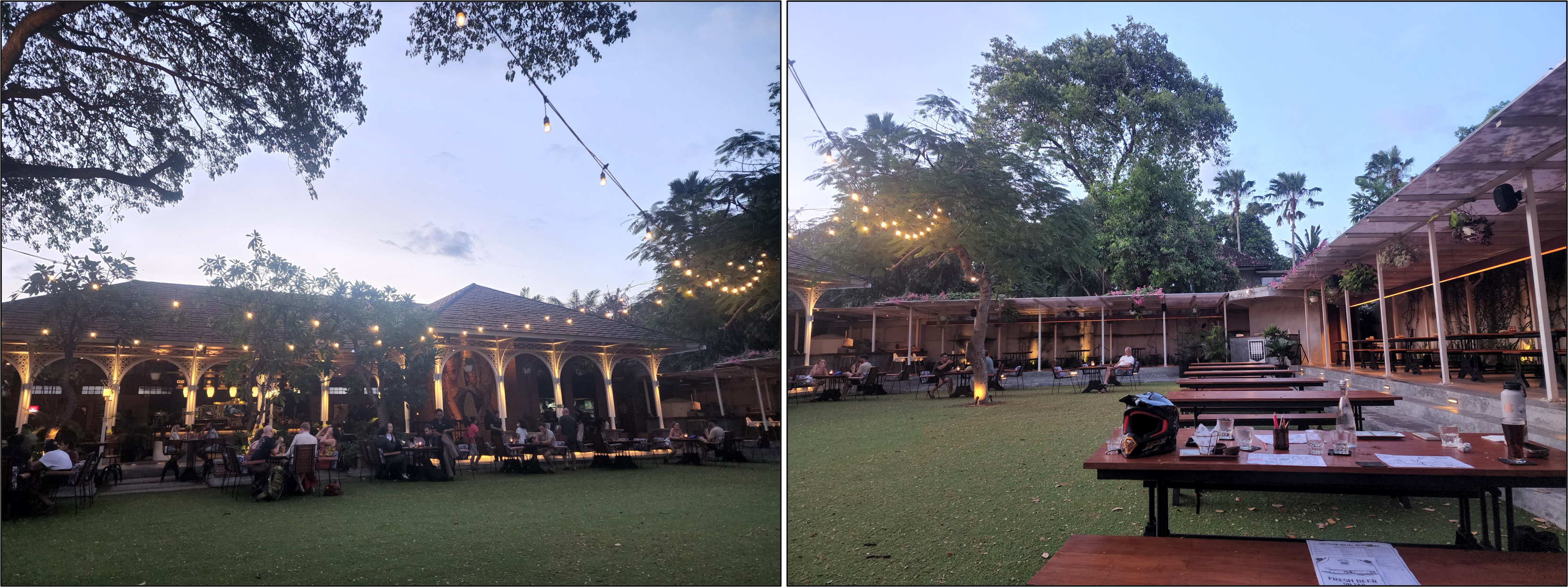 Shotgun Social Bali의 건물은 ㄷ자 형태로 되어있고 건물들 사이에는 넓은 잔디밭이 있어서 아이들이 뛰어놀기에 좋아요. 식당 한 켠에서 직접 연주하는 음악소리가 울려 퍼지면서 분위기를 한층 더 돋우어줘요. 화장실 역시 깨끗해서 아이와 이용하기에 전혀 문제가 없었습니다.